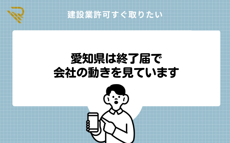 愛知県の実務感としては、兼業中心で建設工事をあまりしていない会社であっても、会社が営業行為をしているのか、今も動いているのかを確認する意味で、終了届は大切に見られています。